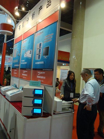 展会从一开始,莱伯泰科展台就吸引了很多前来咨询产品的用户及老师,莱伯泰科的展台设计是依据我们的产品划分为四个区:无机产品区、有机产品区、实验室设备区、超净实验室四个区域,并设立了两个接待台,无论您从哪个角度进入我们的展台,都会受到我们的热情招待,公司还有每个用户准备了精致的小礼品,同时,公司还为客户安排了两个休息洽谈区,为用户提供了更多的方便。